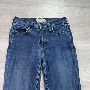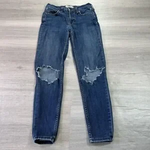 Free People Skinny Jeans Womens 24 Blue Dark Wash Ripped Knees Stretch Denim