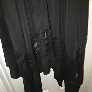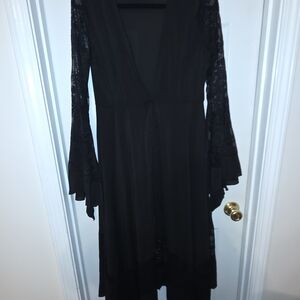 Elegant long sleeve dress. Features lace details. Flowing silhouette. Perfect for any occasion.