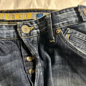 GUESS Premium Falcon Mens Jeans 36x34 Bootcut Dark Wash Denim Embellished Button