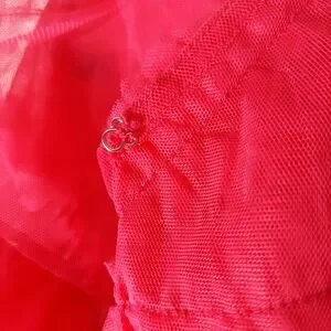Vibrant hot pink tulle top with ruffled layers. Perfect for a bold statement look.