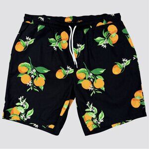 Men's Orange Print Shorts - Black XL