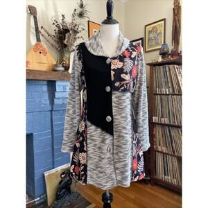 Anthropologie Luii S Button Front Mixed Media Jacket Cardigan Floral/ Knit Boho