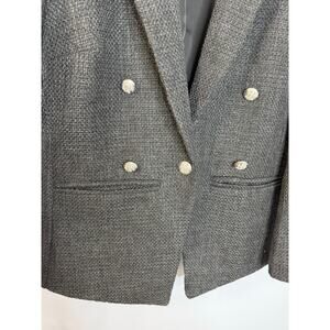 Central Park West Clarke Tweed Double Breasted Blazer Women's M Charcoal Black