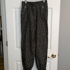 Camo joggers by Varley. Versatile style for casual wear or any type of active performance. The color looks different in different light. They are a dark charcoal, military green, brown combination as best I can tell. Size small. Excellent used condition.
