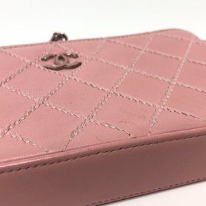 CHANEL Authentic Pink Lambskin Leather Logo Wallet