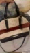 Preowned BRAHMIN Cava Tricolor Vineyard Black Pecan Ivory Hudson leather bag. Only small call out is minor ink stains interior- may be able to be cleaned