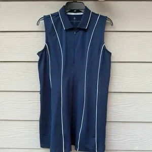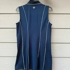 Tuckernuck Sport Roxana Half Zip Golf Dress in navy with white piping