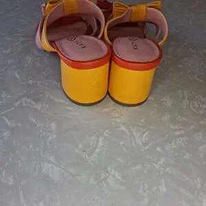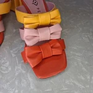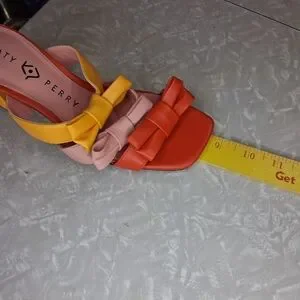 Katy Perry The Tooliped Bow Sandalss Block Heels 5.5 Mango Pink Orange Colorway