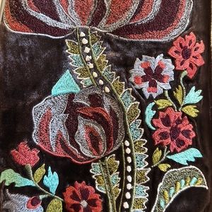 Chan Luu velvet silk embroidered fringe beaded neck scarf. Taupe brown. Lovely, new removed retail tag but new and unworn guarantee. Nice item for gifting