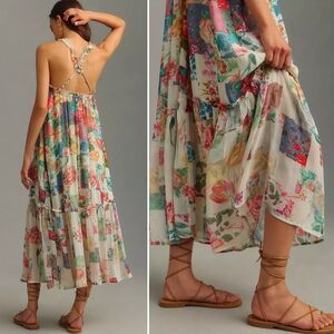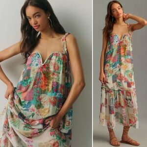 NWT, Anthropologie, Chiffon Flowy Mixed Floral Print Midi Dress