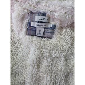 L.L. BEAN Women Scotch Plaid Flannel Shirt Sherpa-Lined Zip Hoodie Shacket SZ M