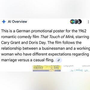 Vintage post card - unused. This is a German promotional post card for the 1962 romantic comedy film That Touch of Mink, starring Cary Grant and Doris Day.