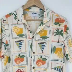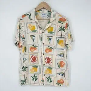 Old Navy Men's Short Sleeve Camp Shirt Retro Postcard Style Button Down Shirt