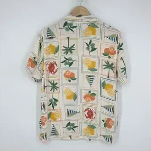 Old Navy Short Sleeve Camp Shirt Retro Postcard Style Button Down Shirt