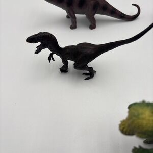 This lot of 6 vintage dinosaur figures includes soft and hard plastic representations of a Velociraptor. These unbranded collectibles feature intricate details of the prehistoric animals, perfect for any dinosaur enthusiast or collector looking to expand their collection with a unique and authentic piece. Each figure captures the essence of the Velociraptor species, making them a valuable addition to any prehistoric animal-themed display. Styracosaurus,brachiosaurus, pachycephalosaurus, dimetrodon, papo velociraptor, apatosaurus.
