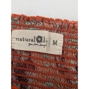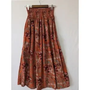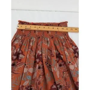 Natural Life Boho Smocked Waist Maxi Skirt Floral Print Brown Orange Women's M