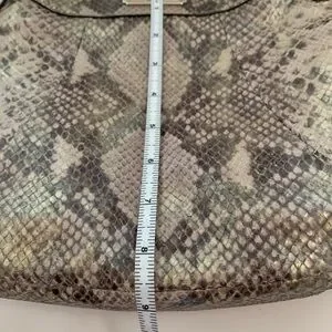 Coach Madison Maggie hobo bag in a gray and tan python-embossed leather.