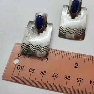 gorgeous sterling silver Navajo Mark Jimenez signed lapis lazuli earrings for pierced ears