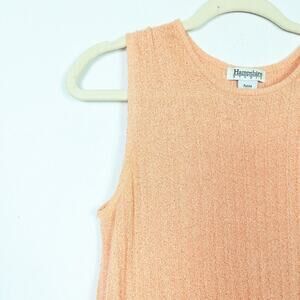 Hampshire Studio Orange Knit Petite Tank Top. Tank top sweater blouse in a beautiful light coral (orange/peach) color. Knitted material. Petite sizing. 80% Acrylic. 20% Nylon.