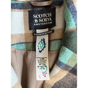 SEO: Scotch & Soda plaid coat women’s small, green wool blend preppy jacket, single breasted Scotch & Soda coat, European designer outerwear, tailored plaid coat green, women’s Scotch & Soda jacket, wool blend checkered coat, Scotch & Soda winter fashion, modern preppy coat women, high quality wool plaid coat