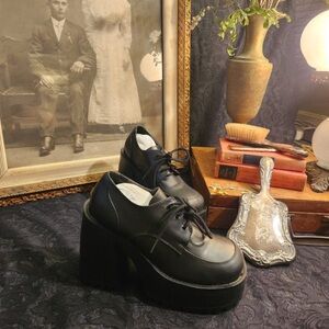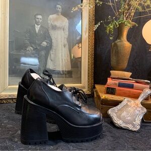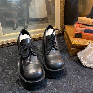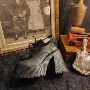 Tags: #chunky platform, #leather footwear, #gothic shoes, #punk style, heavy duty heels, ribbed sole, retro fashion, preppy shoes, block heel, stacked oxford, #cute