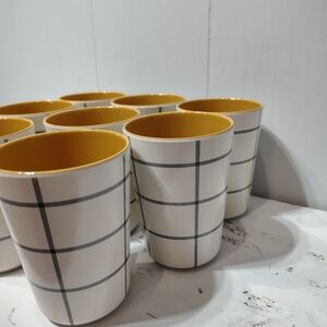 Hearth & Hand Magnolia Plaid Bamboo Melamine Tumblers Set of 8 12.5 oz Mustard