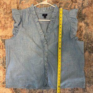 A stylish chambray " Sleeveless Ruffle Top" button-front shirt/blouse from J. Crew (2024 collection) that is in EXCELLENT condition - please see photos! Size is a women's XXL/2XL. Material is 100% cotton.