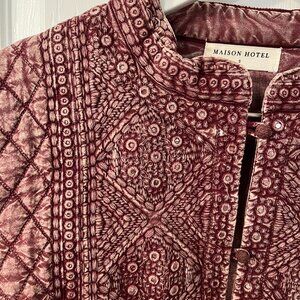 Beautiful quilted jacket from Maison Hotel, size S. Worn only 2x. Cozy and beautiful. Color is more like cranberry/sangria.