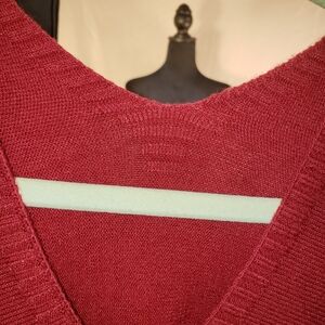 Stay cozy and stylish with this red V-neck sweater. Perfect for any occasion. Brand and size tags are missing, so please check measurements to ensure a proper fit.