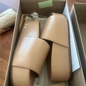 Elegant leather platform slides by Beek.
