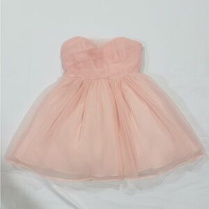 Chic strapless design. Soft pink tulle fabric. Perfect for elegant events.