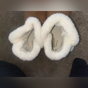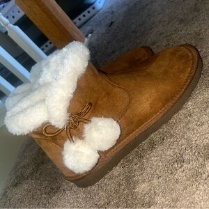Comfortable tan boots with soft faux fur trim. Perfect for cozy days.