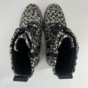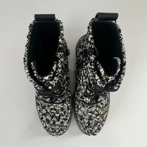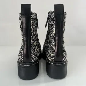 Tory Burch 50mm Tweed Lug Sole Combat Boots in Black/Multi