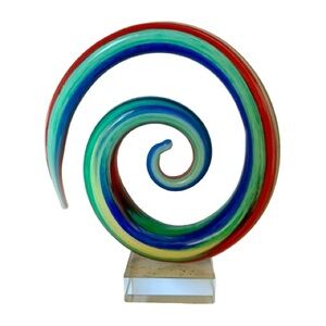 Vintage Murano Handblown Glass Colorful Spiral Coil Snake Three Dimensional Art