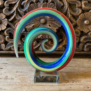 Murano Glass Multicolor Colorful Rainbow Spiral Coil Snake 3D Handblown Art