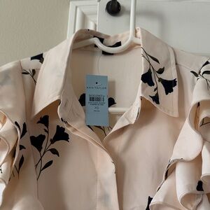 Ann Taylor Cream and Black Floral Ruffle Blouse