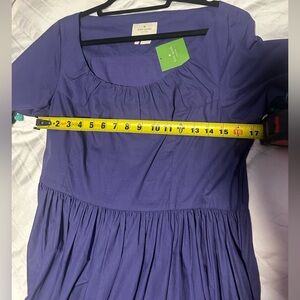 Stylish Kate Spade dress in deep purple. Features teal peacock design and tassel accents. Ideal for casual outings.