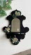 Mirrored wall shelf with painted floral design. Moroccan-style shape. Made in India. Light wear - a few scuffs, tiny scratch on the mirror - but overall in good condition! I’m unsure if this is vintage or modern made.
