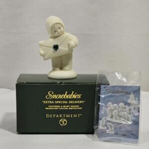 Vintage Dept 56 Snowbabies " Extra Special Delivery " Heart Jewel May Emerald