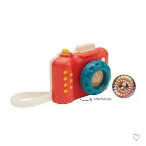 Get picture perfect views of your surroundings with this PlanToys My First Camera. Point, focus, and click the camera. Children will see the different images they try to capture through the kaleidoscope lens. Pretend play with the camera offers children the opportunity to storytell and make up scenarios that ultimately support their creative thought process. Made sustainably in Thailand with PlanWood.