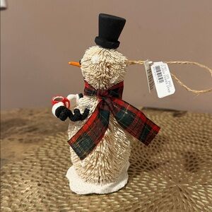 NEW, Pottery Barn Holiday Bottlebrush Snowman and Polar Bear Ski Ornament Set