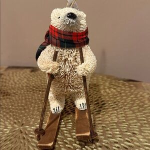 Pottery Barn Holiday Bottlebrush Snowman and Polar Bear Ski Ornament Set