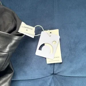 Elegant black skirt featuring a stylish combination of fear leather and fabric. Perfect for a chic and modern look.