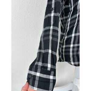 Woolrich women's small black plaid long roll tab sleeves button front shirt