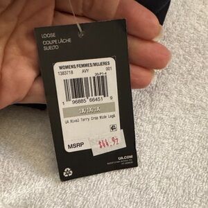NWT Under Armour Rival Terry Crop Capri Joggers 33” length. Wide leg Loose Fit