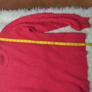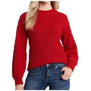 CeCe Luminous Red Pullover Ribbed Knit Sweater With Bobble Sleeves Size S