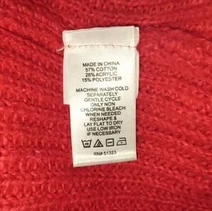 57% Cotton / 28% Acrylic/ 15% Polyester