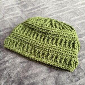Cozy green crocheted beanie handmade by ME! Perfect for chilly days. Slightly slouchy in the back. Unisex.