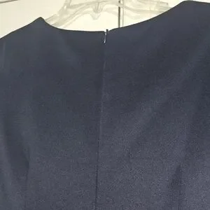 Description: Sheath Dress, Short Sleeves, Chevron Pattern, Split Neck, and Knee Length