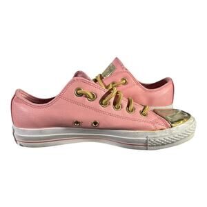 Converse All Star Women’s Chuck Taylor Low Top Leather Pink Sneakers Gold Sz 7.5